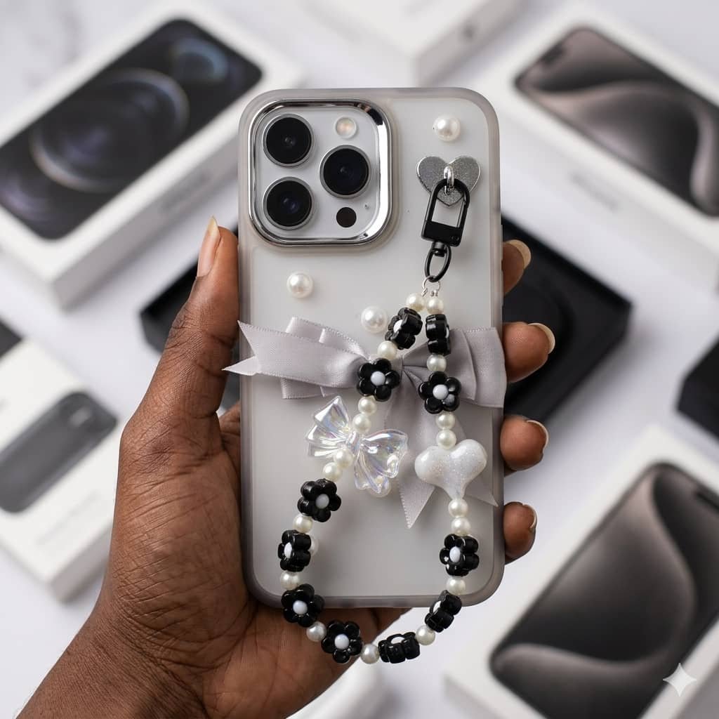 Cute Floral Beaded Phone Case with Wrist Charm