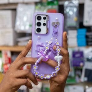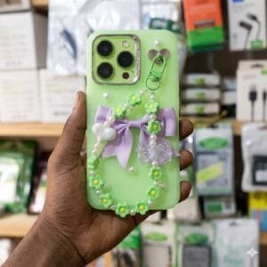 Add style and protection to your phone with this beautiful floral beaded phone case. Designed with colourful flowers, pearls, and a cute bow charm, this case gives your phone a unique and fashionable look.
