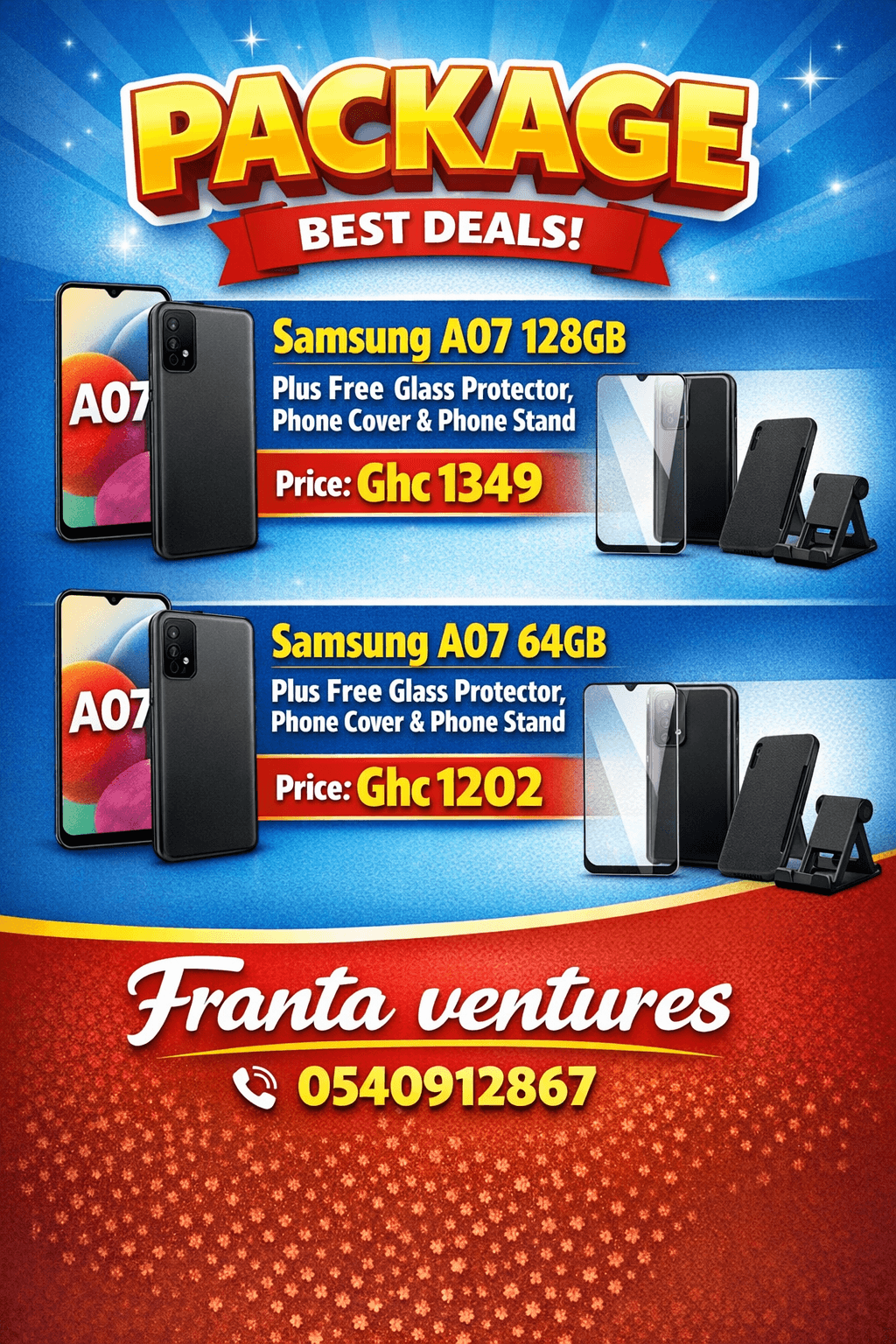 Buy Samsung Galaxy A07 128GB and get free Phone, protector, phone cover.
